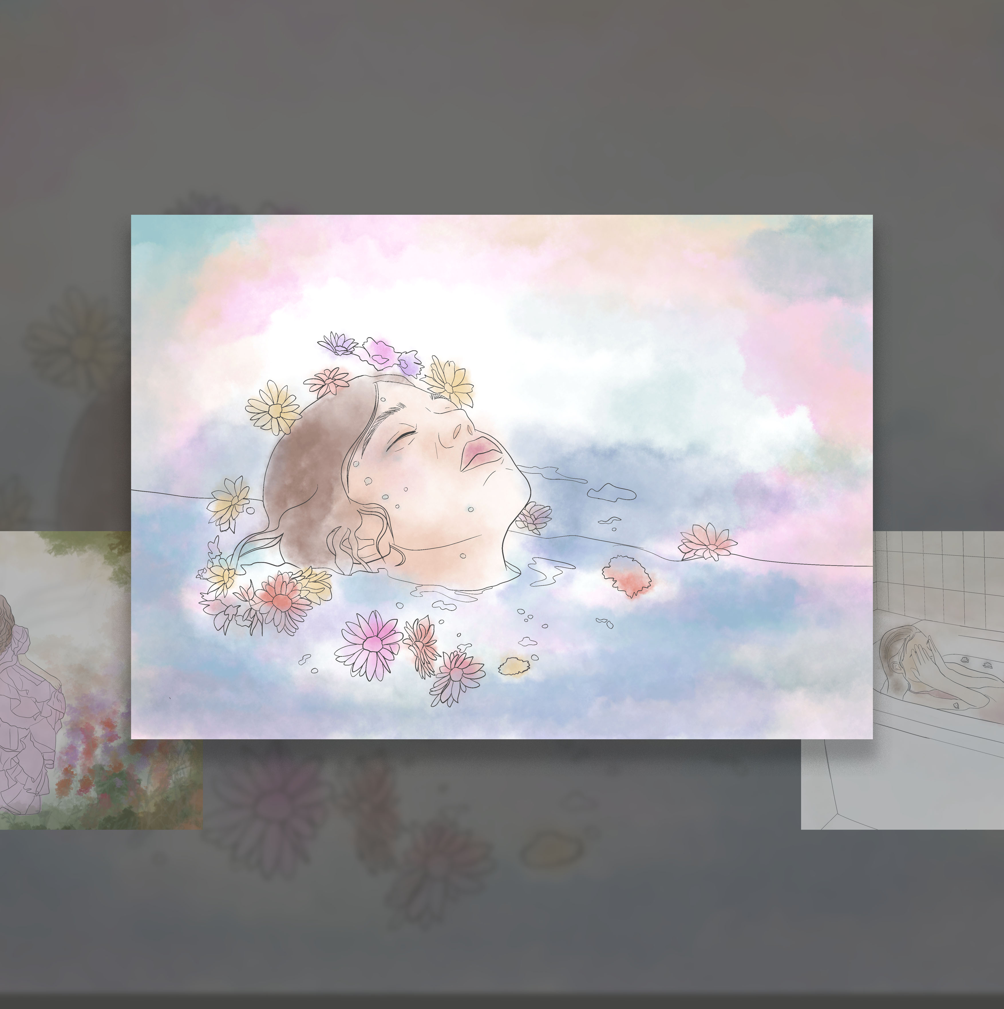 Key Visuals: Flowers, half-submerged, water, softer to stronger color.